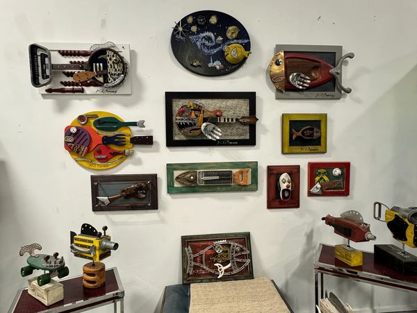 His studio, aptly named "The Fish Factory," reflects his passion for repurposing discarded everyday items into whimsical fish sculptures.
